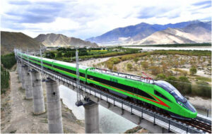 A Fuxing bullet train runs on the Lhasa-Nyingchi railway in Nyingchi, southwest China’s Tibet Autonomous Region, June 16, 2021. (Xinhua/Chogo)